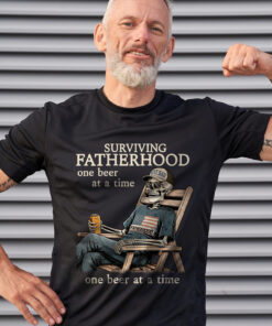Surviving Fatherhood One Beer At A Time Funny Skeleton Father’s Day Shirt